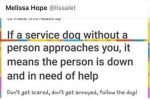 No service dog has ever approached me without it's owner (is owner the right word, I'm sure there must be a better one) but if one ever does I will now know someone needs help.