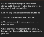 Some of us remember the troll/poster Ty ? She caused a bit of a commotion once when the hypothetical question was....In a burning building there are two doors. Behind one is your pet dog, behind the other is a child you dont know, you can save only one, which one would you choose?