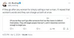 JK has now said if the police simply didn't go after her because she has the means to defend herself, she wants every woman in Scotland to know she will repeat their words and the police will have to charge her alongside each and everyone of us.