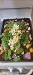 Stew meat, onions, golden beets, turnips covered in olive oil and spices, then finished with some spinach and feta cheese.