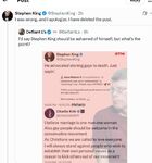 As for Stephen King, a highly influential writer with millions of followers and fans and he posts a complete untruth that he later removes and apologises for. But you know, too fucking late!